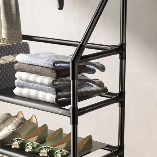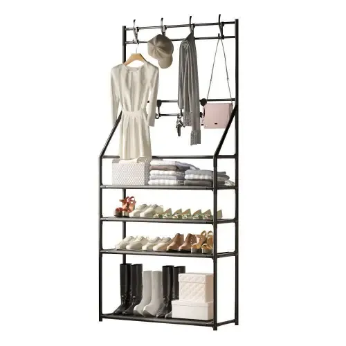 ستاند أحذية وعلاقة ملابس ✨ رفوف من القماش عدد 4 ✨ مصنوع من المعدن المقاوم للصدأ ✨ علاقة ملابس متعددة الوظائف ✨ مقاس: 145 × 60 × 25 سم ✨ متوفر بالألوان: أسود - أبيض 🚚 التوصيل: - ضمن دمشق - شحن لجميع المحافظات (قدموس/هرم) 💖 تنظيم أنيق وعملي للملابس والأحذية! السعر 170000