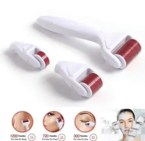 ديرما رول 3 in 1 🎀😍 لعلاج التجاعيد والحفر والمسامات المفتوحة والندوب وعلامات التمدد واثار حب الشباب وذلك بسبب قدرتها المميزة على تحفيز الكولاجين في البشرة بآلية وخز الابر المصنوعة من التيتانيوم . 🎀 مكونة من مقبض واربع رؤوس مختلفة الأحجام وقابلة للفك 🎀 0.5 ملم .. 180 ابرة .. لمنطقة العين 🎀 1 ملم .. 540 ابرة .. للوجه 🎀 1.5 ملم 1200 ابرة .. للجسم توصيل ضمن دمشق وريفها وشحن للمحافظات🎀 السعر 95000