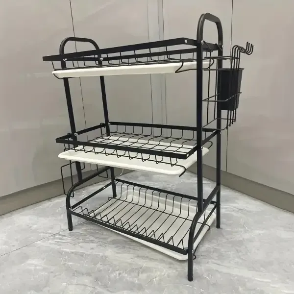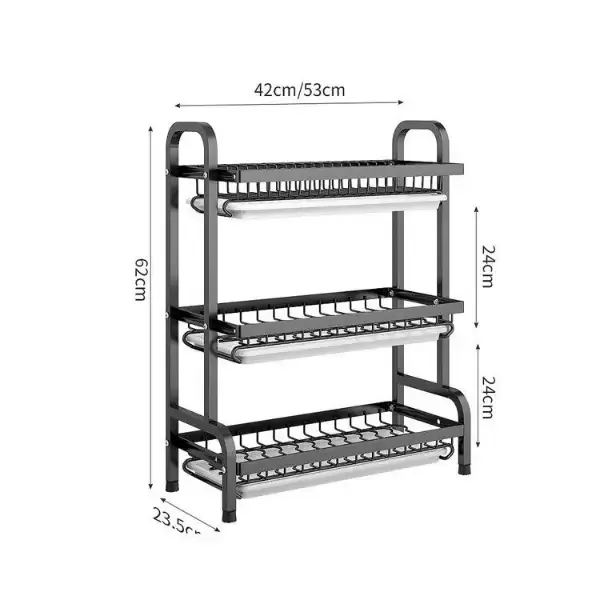 مشك صحون 3 طبقات مصنوع من المعدن ضد الصدأ والكسر صواني داخلية لتجميع المياه قابلة للإزالة ملحقات لترتيب معالق السكب والسكاكين 🎗 الأبعاد موضحة بالتفصيل بالصور ⭐️ الطول : 42 سم ⭐️ العرض : 23.5 سم ⭐️ الارتفاع : 62 سم