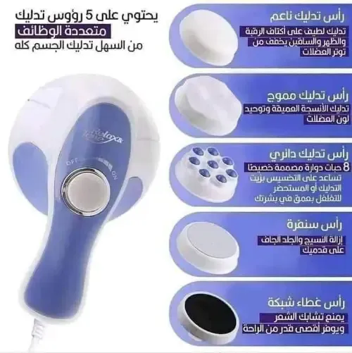 جهاز مساج Relax & Spin Tone 💎-أفضل جهاز مساج حتى الآن -يساعد علي إسترخاء 💙-قم بتدليك جسمك و استمتع بالاسترخاء -إعادة توزيع السيلوليت في الجسم ❄️-جهاز رائع للرجال و النساء -يعمل على تكسير الدهون و مساج للجسم 💠-يستخدم لجميع أجزاء الجسم. 🩵-ينشط الدورة الدموية.- يعمل على تخسيس الجسم من خلال تنشيط الدورة الدموية. 💎-يعمل على الكهرباء.توصيل ضمن دمشق وشحن للمحافظات 💙 السعر 150000