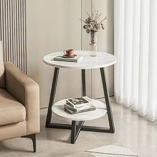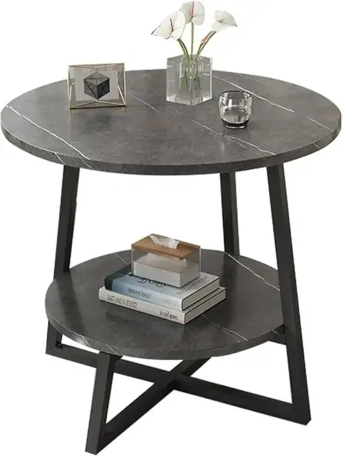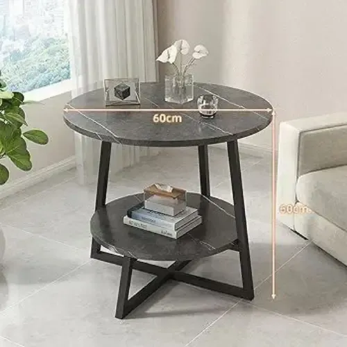 طاولة جانبية دائرية بتصميم عصري وأنيق 🪑 مقاس 60 سم قطر، ارتفاع 60 سم، مناسبة لكل المساحات 📏 سطح مغطى بخشب ماربل مقاوم للخدوش والبقع 🧽 هيكل فولاذي متين ببنية متقاطعة لثبات تام ⚙️ مستوى أسفل لتخزين الكتب أو الزينة أو المشروبات 📚 سهلة التنظيف وتناسب غرف المعيشة أو النوم 🛋️ متوفرة باللونين الأبيض والرمادي، إضافة أنيقة لأي ديكور 🎨 توصيل ضمن الشام وشحن للمحافظات 📦 السعر 265000