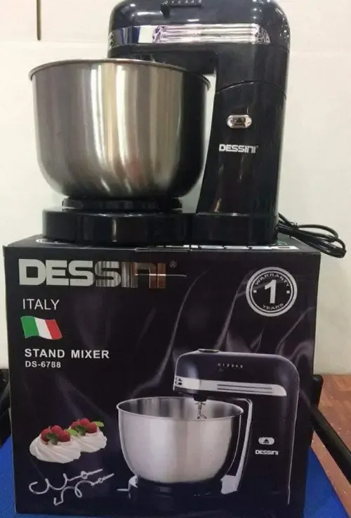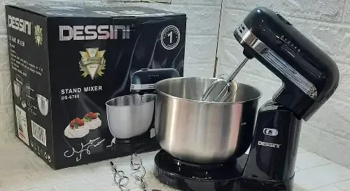 عجان وخلاط إحترافي 3.5 لتر لتحضير العجائن والوصفات بسهولة من شركة Dessini الايطالية 😍– يمتاز ب6 سرعات مختلفة قابلة للتعديل لتلائم مختلف الاستعمالات.– 3 خطافات تقليب مصنوعة من الإينوكس للعجائن الثقيلة.– قاعدة ثابتة مضادة للانزلاق لاستعمال آمن.– وعاء من لافولا المقاوم للصدا سعة 3.5 لتر.– زر أمان لتغيير ملحقات العجان.– محرك قوي بسعة 800واط. السعر 446000