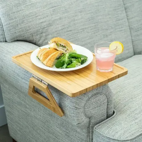 طاولة خشب جانبية للصوفا والكنبة 😍❤️تثبت على الأيدي الجانبية للصوفايات ✅لوضع الأغراض والأطعمة والمشروبات... 😌خامة تقيلة مصنوعة من خشب البامبو 😎مع مفاصل قابلة للتعديل لتثبت في مكانها 👌الأبعاد { الطول 38 - العرض 25 } سم 🎗توصيل ضمن الشام وشحن للمحافظات 🚌