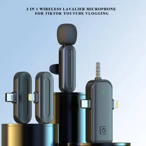 ميكروفون لاسلكي من طراز SX26. تشمل مواصفاته وميزاته الرئيسية ما يلي: ثلاثة في واحد: متوافق مع أجهزة متعددة عبر توصيلات USB-C و Lightning و 3.5 ملم. تقنية إلغاء الضوضاء النشطة (ANC): مزود بميكروفونين لإلغاء الضوضاء لتوفير وضوح صوت استثنائي. خفيف الوزن ومحمول: يزن حوالي 26 جرامًا فقط، مما يجعله سهل الحمل ومريحًا للاستخدام. متعدد الاستخدامات: مناسب للبث المباشر، ومدونات الفيديو (vlogging)، والمقابلات، والتدريس، وغيرها من السيناريوهات. سهل الاستخدام: لا يتطلب خطوات معقدة؛ ما عليك سوى توصيل جهاز الاستقبال بالجهاز لبدء التسجيل. السعر 180000 K