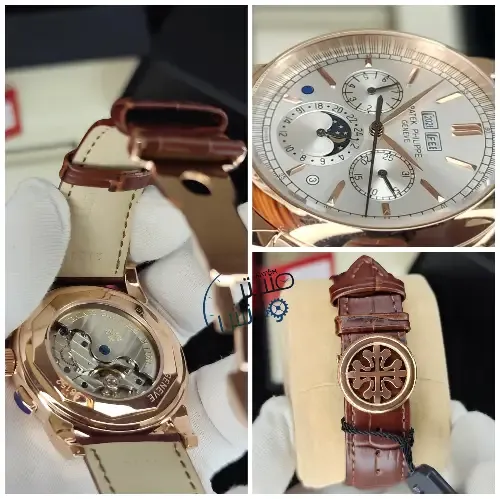 ساعة الأثرياء والرأسماليين باتيك فيليب🌖 المطلية بالذهب الوردي ⏱كوبي 1 A.A.A ⚙️ماكينة اتوماتيك ذاتية الحركة ⚙️⚙️ فائقة الدقة مع عداد للعام و عداد للشهر و عداد اسبوعي وعداد لتاريخ اليوم وعداد لنظام 24 ببيان حركة الشمس و القمر 🌞🌙🌒 غطاء الماكينة زجاجي مما يتيح لك رؤية الية عمل الساعة 💎عدسة من زفير الكريستال المقاوم للخدش وكستك من الجلد الطبيعي الفاخر مع ختم باتيك فيليب على الجلد و القفل 📐 مطابقة لوزن وابعاد واختام الاورجينال مرفقة بالعلبة و الملحقات الاساسية 🥇متوفرة الان ▪️كفالة لمدة سنة ▪️ للطلب والاستفسار اتصال او واتساب:0988644509