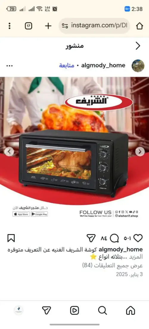فرن كهربائي الشريف 70 لتر 📦 قدرة 2500 واط – أداء قوي وسريع ⚡ ضمان سنتين – ثقة وضمان جودة 🛡️ مروحة داخلية + إنارة – طهي متساوٍ وواضح 💨 يُستخدم للشوي، الخبز، التحميص، والطاجين 🍗 مناسب للعائلات الصغيرة والمكاتب 🏠 توفير في الطاقة مع نتائج احترافية 🕒 توصيل ضمن الشام وشحن للمحافظات 🚚 السعر 750000