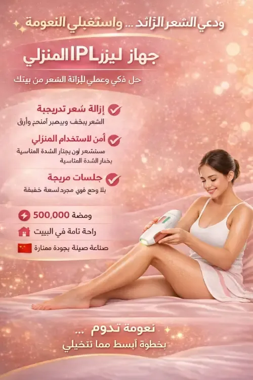 ⬅️ *جهاز ليزر IPL* 1. إزالة شعر تدريجيا: مع الاستخدام المنتظم، الشعر بيخف وبيصير أفتح وأرق. 2. آمن منزلياً: أغلب الأجهزة فيها مستشعر للون البشرة عشان يحدد الشدة المناسبة. 3. جلسات مريحة: ما في وجع قوي مثل الليزر الطبي (فيه حرقة بسيطة أو لسعة خفيفة). ⬅️ طريقة الاستخدام الصحيحة: 1. التحضير: احلقي المنطقة قبل الجلسة (لا تستعملي الشمع أو النتف، لازم تبقى البصيلة موجودة). وتأكدي إن البشرة نظيفة وجافة (ما عليها كريمات أو عطور). 2. اختيار المستوى المناسب: الجهاز بيكون فيه مستويات شدة (عادة 3–5 درجات). ابدئي بأقل مستوى وجربي، وإذا ما حسّيتي بلسعة قوية ممكن ترفعي المستوى تدريجياً. 3. طريقة التطبيق: حطي الجهاز بزاوية قائمة على البشرة لحتى يشتغل. ضغطة وحدة = ومضة وحدة (تغطي منطقة صغيرة). 4. عدد الجلسات: عادة جلسة كل أسبوعين بالبداية (أول 4–6 جلسات). بعدها جلسة كل شهر للتثبيت والصيانة. بعد 3–4 أشهر رح تلاحظي إن الشعر صار أفتح وأقل كثافة.