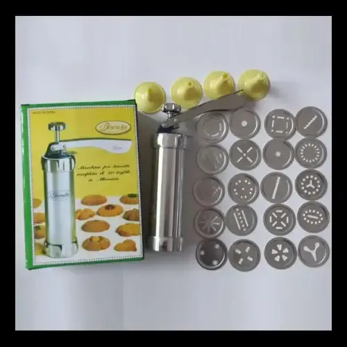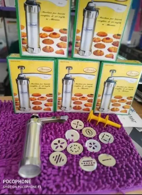 مكبس بيتفور ستانلس ستيل متين وعالي الجودة 🍰مقاس 55mm قطر الأسطوانة وارتفاع كلي 378mm 📏يأتي مع عدة قوالب نقشات متنوعة للأشكال الجميلة 🎨نظام كبس يدوي سهل وسريع بدون تعب أو عناء 👐مثالي لتحضير معمول العيد والبسكويت المنزلي 🥮نتائج احترافية وشكل شهي يفرح العائلة والأطفال 😋خامات عالية الجودة سهلة التنظيف والاستخدام 🧼توصيل ضمن الشام وشحن للمحافظات 🚚 السعر 110000