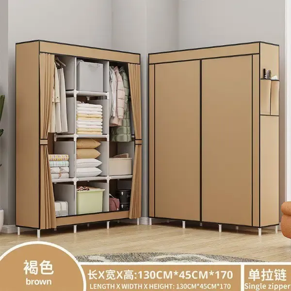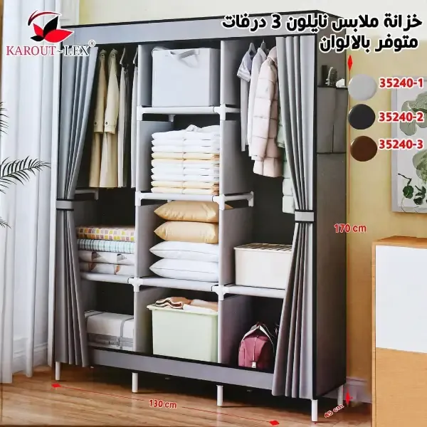 خزانة ألبسة مصنوعة من القماش لتنظيم الأغراض واستغلال المساحات أعمدة من الستانلس المقاوم للصدأ والكسر غطاء برداية قابل للفتح والتثبيت ⭐️ الأبعاد { 170 × 45 × 130 } سم ⭐️ الألوان { كحلي - أسود - رمادي - بني }