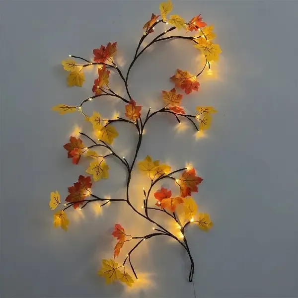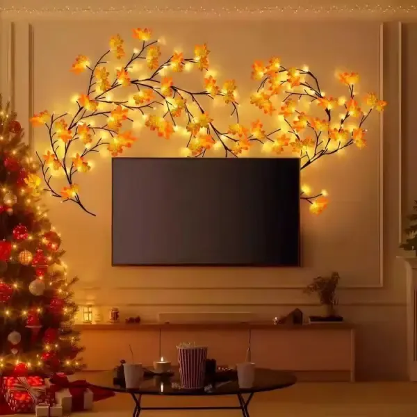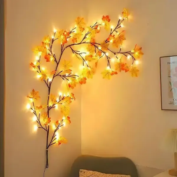 شجرة الخريف المضيئة أجمل قطعة ديكور للحائط مكونة من 72 ليد مضيء وأوراق خريفية باللون الأصفر والأورانج موزعة على 12 غصن مرن قابلة للطي والتشكيل حسب الرغبة مزودة بريموت كونترول للتحكم عن بعد يمكن من خلاله التحكم بشدة الضوء مع إمكانية التبديل بين 8 أنماط للإضاءة تعمل بالوصل المباشر بأي مأخذ USB ⭐️ طول الشجرة 1.5 متر ⭐️ طول سلك التشغيل 2 متر