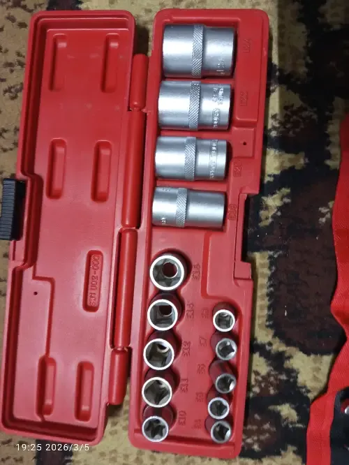 عدة مبكانيك تتضمن: طقم مفاتيح حلق + طقم مفاتيح شق+ طقم مفاتيح ميلة + طقم كشاتبين عادي مع طقطاق + طقم كشاتبين نجمة+طقم كشاتبين مشرشرة + كشاتبين طويلة من ١٢ل١٧ مم+ كريكو تمساح ٣ طن+ حمالات سيارة + فرد شد عزقات+ بانسات سكمان عدد ٤ +بانسة لقط+ بانسة مصافي + بانسة هادية + قطاعة +زرادية + ملزمة زرادي طويل