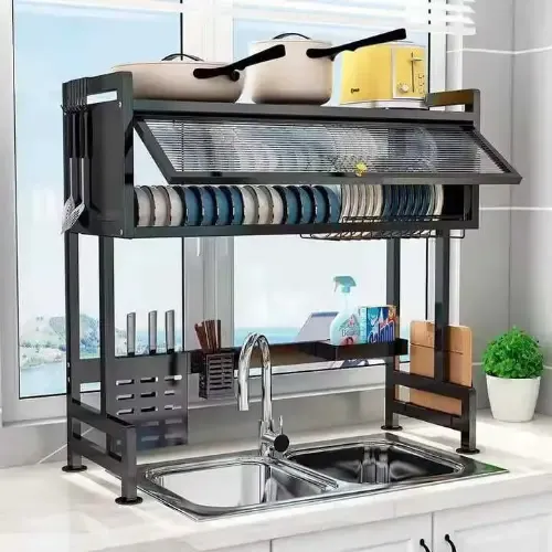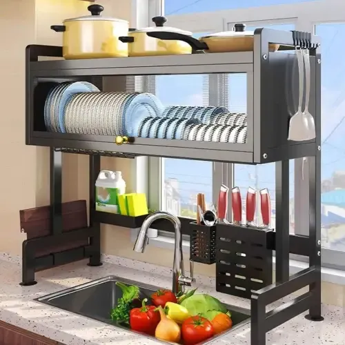 مشك صحون ملكي حجم كبير جامبو ❤️ مصنوع من المعدن ضد الصدأ والكسر 😎 رفين مع غطاء بليكسي لزيادة الجمالية 😍 وملحقات لتعليق معالق السكب والسكاكين 🤗 ورف صغير لوضع أدوات التنظيف وسائل الجلي ✅ أفضل وسيلة لغسل وترتيب أدوات المطبخ 🌸 🎗 الأبعاد موضحة بالتفصيل بالصور 🎗 ⭐️ الطول : 85 سم ⭐️ العرض : 28.5 سم ⭐️ الارتفاع : 79 سم توصيل ضمن الشام وشحن للمحافظات 🚌