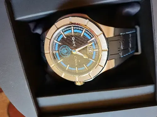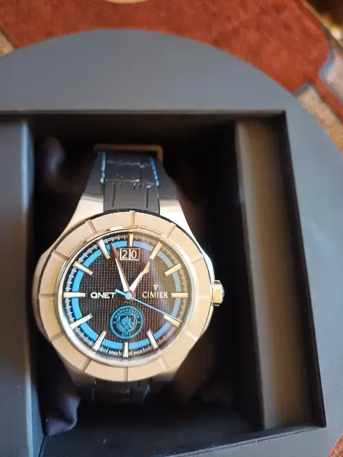 أرقى ماركات الساعات[CIMIER]. تخفيض السعر 50% بمناسبة العيد 🎉 جريئة وأنيقة ومجهزة بقدرتها العالية، تم تصميم ساعة QNETCity Collection بشعار النادي الأزرق البركاني الأيقوني الموجود على قرصها، ورقم تسلسلي مميز، وعلامة "المنتج الرسمي المرخص لمانشستر سيتي" على ظهر العلبة. نص بياني مكتوب على معصم يحمل اسمًا عالميًا يمكنك ارتداؤه بكل فخر، تعتبر ساعة QNETCity Collection مناسبة ومثالية للرجل الذي يعشق اللعبة داخل وخارج الملعب. • المواصفات : الزجاج : الكريستال الياقوتي المقاوم للخدش مع طلاء مضاد للانعكاس . الحزام والمشبك : مشبك قابل للطي من المطاط الأسود والفولاذ المقاوم للصدأ 316L . الوظائف : ساعات، دقائق، ثواني وتاريخ . القطر :42 ملم . مقاومة للماء : 10 ATM (100 متر/ 330 قدم) . الحركة : كوارتز السويسري ـ Ronda . الصناعة : صناعة سويسرية . العلبة والتاج : الفولاذ المقاوم للصدأ 316L المصقول . العلبة الخلفية : الفولاذ المقاوم للصدأ 316L والمكتوب عليه "منتج رسمي مرخص من نادي مانشستر سيتي لكرة القدم" .