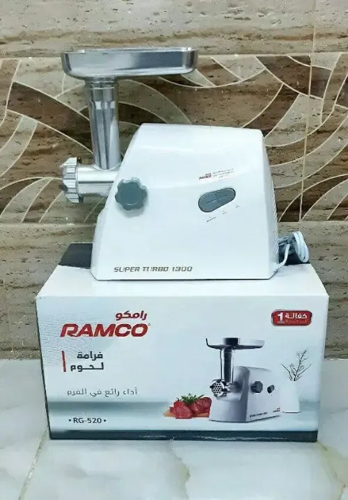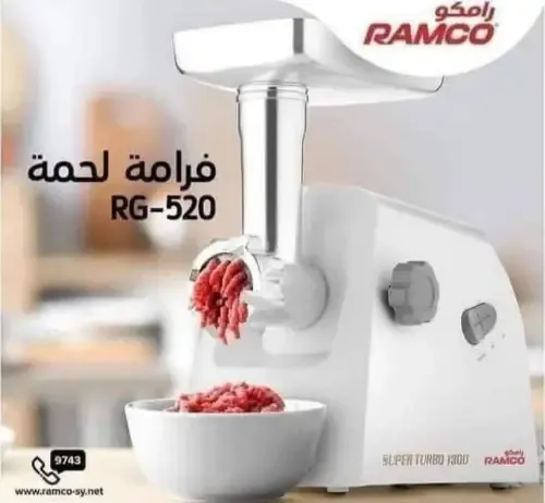 ماكينة لحمة رامكو وطنية المنشأ 😍🎀الهيكل الخارجي من البلاستيك المتين✌محرك نحاسي جبار 1300 واط { فعليّـة } 😎3 قوالب للفرم { ناعمة - وسط - خشنة } 🤗مع قالب خاص للكبة أو السجق 😉كفالة سنة كاااملة مع وجود وكيل للصيانة ❤️توصيل ضمن دمشق وريفها وشحن للمحافظات🎀