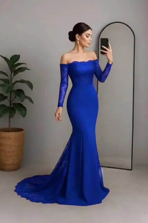 فستان مخمل كريستال اجنبي دانتيل كابيه اجنبي مستورد 38/40/42/44/ موف/ نيلي/ حلب
