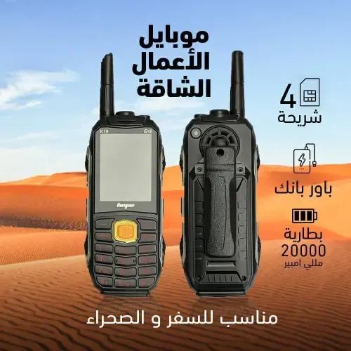 🔥 الموبايل الخارق المعروف عند الجميع 🔥📱 Hope K19 بـ 4 خطوط 💎🛡️ هيكل متين مضاد للصدمات والغبار🔋 بطارية ضخمة 20,000 مللي أمبير📋 يدعم 4 شرائح SIM🎭 تغيير الصوت (رجل-امرأة-طفل)⏺️ تسجيل المكالمات💾 كرت ذاكرة + 512MB تخزين🔦 إضاءة بيل + ليزر أحمر📡 انتيل لإشارة قوية📺 تلفزيون + راديو بدون سماعة📸 كاميرا 2MP🖥️ شاشة 2.4 إنش ملونة🔤 يدعم اللغة العربية⌨️ كيباد سهل وسلس🚚 توصيل في الشام + شحن للمحافظات السعر 350000