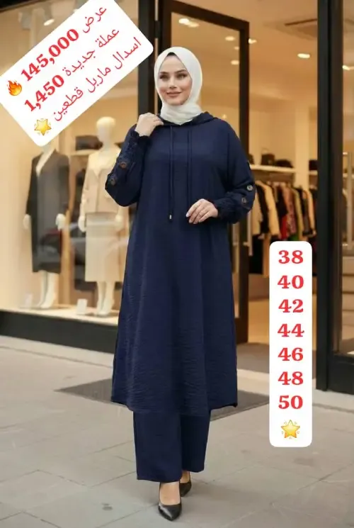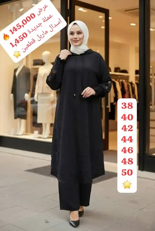 *السعر المبيع 145,000 الف 🔥🔥🔥* *والسعر المبيع على العملة الجديدة 1,450 ليرة 🔥🔥* لباس شرعي طلعة الاكثر تميزاً ووقار ✨🌟 🌟🌟🌟 اسدال شرعي نسائي قطعتين كنزة طويلة بطاقية تحلاية ع الكم ازرار مع بنطال فضفاض بكمر مريح ✅ قماش ماربل سي واي خريفي كواليتي اجنبي عالي الجودة تقيل ومكفول مع ضمان الترجيع 💯💯💯 3 الوان *(اسود ـ زيتي ـ كحلي)🖤💙💚* مقاسات ستاندر بلبس 💯 38 40 42 44 🌟 46 48 50 🌟 توصيل ضمن الشام والارياف وشحن للمحافظات 🚚 تسليم وتوزيع فوري بإذن الله 🤍❤️❤️❤️ شام