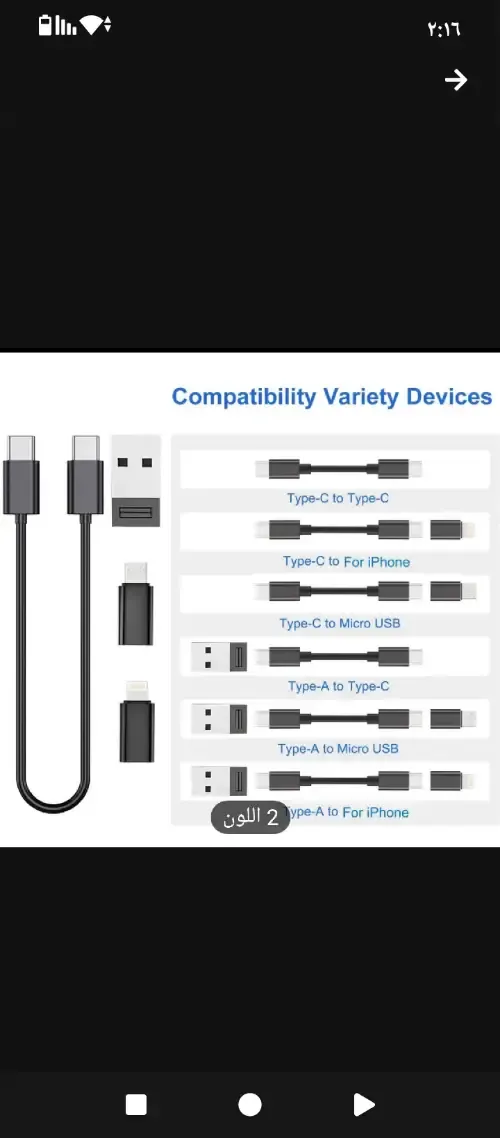 🔄 تحويل متعدد: يدعم عدة أنواع من المنافذ (Type-C – Lightning – Micro USB).