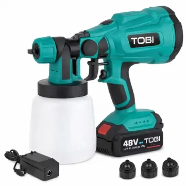 🎨🔋 جهاز رش الدهان TOBI HLP TB‑2001… حرية الطلاء بدون أسلاك! حوّلي أي مساحة إلى نتيجة طلاء احترافية مع جهاز رش الدهان المحمول TOBI HLP TB‑2001—مثالي لدهان الجدران، الأسقف، الأبواب، الأثاث، الأسوار وكل الأسطح بسهولة وسرعة. ⭐ مميزات تخليك تختارينه بثقة: يعمل بالبطارية 48V… بدون أسلاك، بدون فوضى، وحرية حركة كاملة قوة 550 واط لرش متجانس وقوي بدون تقطير 3 فوهات مختلفة (1.0mm – 1.8mm – 2.5mm) تناسب كل أنواع الدهانات هيكل بلاستيك قوي يتحمل الاستخدام الطويل تقنية رش HLP لتغطية ناعمة ونتيجة احترافية تفكيك وتنظيف سهل بعد كل استخدام مناسب للدهانات: الأكريليك، المائي، وغيرها 🎁 محتويات العلبة: جهاز رش الدهان TOBI 3 فوهات ✨ مثالي للبيت، المزرعة، الورشة، وتجديد الأثاث… جهاز واحد يغنيك عن العمال ويعطيك نتيجة صالة عرض. بطارية شاحن