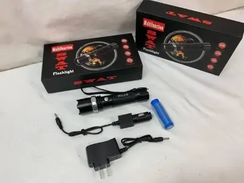 فلاشلايت SWAT قوي بإضاءة 1000 لومن ساطعة 💡5 وضعيات إضاءة تناسب كل الاستخدامات 🎯تصميم متين يتحمل الظروف الصعبة والقاسية 🛡️شحن سريع بـ USB وبطارية قابلة للشحن ⚡خفيف الوزن مثالي للسفر والاستخدام اليومي ✈️إضاءة تكتيكية قوية للطوارئ والرحلات 🔦مثالي للصيد والتخييم والأعمال الأمنية 🏕️توصيل ضمن الشام وشحن للمحافظات 🚛 السعر 110000