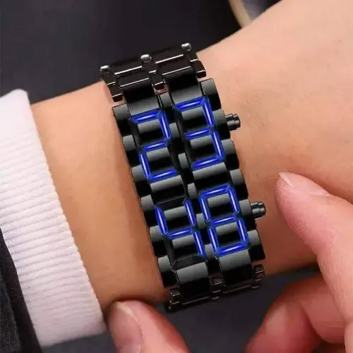 ساعة شبابية أنيقة بتصميم عصري مميز ⌚جسم معدني أسود فاخر ومتين 💎إضاءة حمراء أو زرقاء لعرض الأرقام 🔴🔵عرض الوقت والتاريخ بلمسة واحدة ❄️تصميم وبلاك بقطعة واحدة أنيق ✨مثالية للشباب والعصريين بكل مناسبة 🌟خفيفة الوزن مريحة للاستخدام اليومي 💪توصيل ضمن الشام وشحن للمحافظات 🚛 السعر 150000
