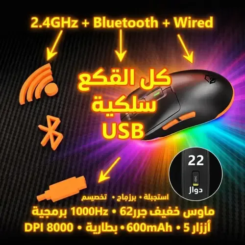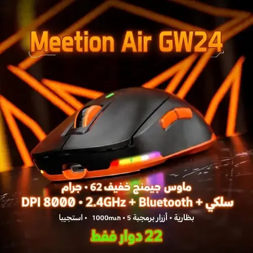 🖱️ ماوس Meetion Air GW24 – خفيف زي الريشة وسريع زي الصاروخ! ⚡ لو بتحب الألعاب أو حتى تستخدم الماوس ساعات طويلة، هذا الماوس راح يغير تجربة الاستخدام عندك. المميزات بطريقة سهلة: • وزن خفيف جداً: فقط 62 جرام! مريح لإيدك حتى لو لعبت أو اشتغلت ساعات طويلة. • اتصال ثلاثي الوضع: لاسلكي 2.4G (سريع) + بلوتوث + سلكي. يشتغل مع الكمبيوتر، اللاب توب، والموبايل بدون أي مشكلة. • دقة عالية: حتى 8000 DPI مع مستشعر PAW3104. • استجابة فائقة: 1000Hz (تأخير 1 مللي ثانية فقط). • إضاءة RGB جميلة: ألوان حلوة تضيف طابع جيمنج لمكتبك. • بطارية قوية: 600mAh، تدوم حتى 60 ساعة (بدون إضاءة) أو 30 ساعة (مع إضاءة). • 5 أزرار قابلة للبرمجة: تخصصها حسب احتياجك. له برنامج خاص به لتعديل احترافي للماوس🟥 الخلاصة:🟥🟥 ماوس اقتصادي، خفيف، مريح، وأداؤه عالي. مثالي للمبتدئين والمحترفين! جربتوا ماوس خفيف زي ده قبل كده؟ شاركوني رأيكم في الكومنتات 👇 سعر عنا مانخبيه (22)دولار سكرة للمتابعين صفحة تواجد ساحت محافظة رقم 0954619750 #Meetion #AirGW24 #GamingMouse #ماوس_جيمنج #ماوس_لاسلكي