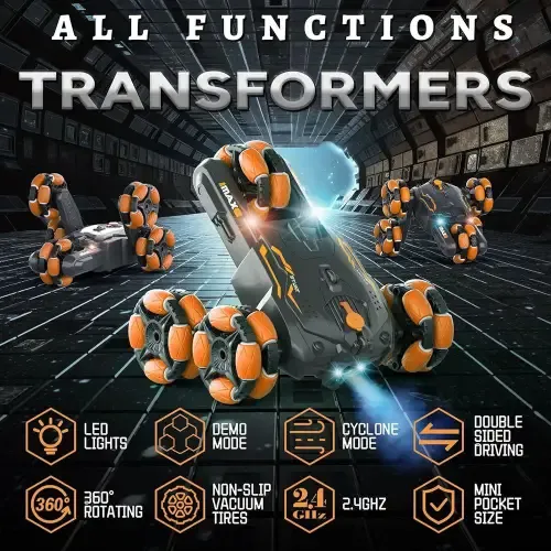 سيارة تحكم عن بعد بتقنية التحويل والاكروبات 🚗تعمل بريموت كنترول 2.4GHz بدون تشويش 🎮عجلات فراغية مانعة للانزلاق لجميع التضاريس 🛞تدور 360 درجة وتقلب بكل سهولة 🔄إضاءة LED ورش ماء للتشويق والإثارة 💡بطاريات قابلة للشحن لاستمرار اللعب ⚡متوفرة بعدة الوان منها ( الاورنج و الأزرق .. توصيل ضمن الشام وشحن للمحافظات 📦 السعر 260000