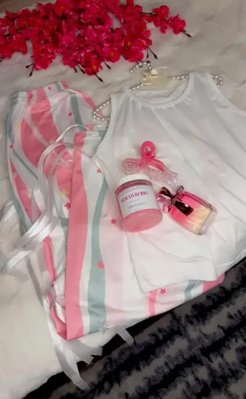 *بيجامة شيال فلير بوت كات قماش قطن سوزيت أجنبي مكفووول 💯* *مقاس فري سايز من 36 لل42 البنطلون لحالو بلبس لل46 سعر 110 الف 🎀✨💅🏻 متوفر تبديل او ترجيع ضمن دمشق والمحافظات لضمان الجودة ✨