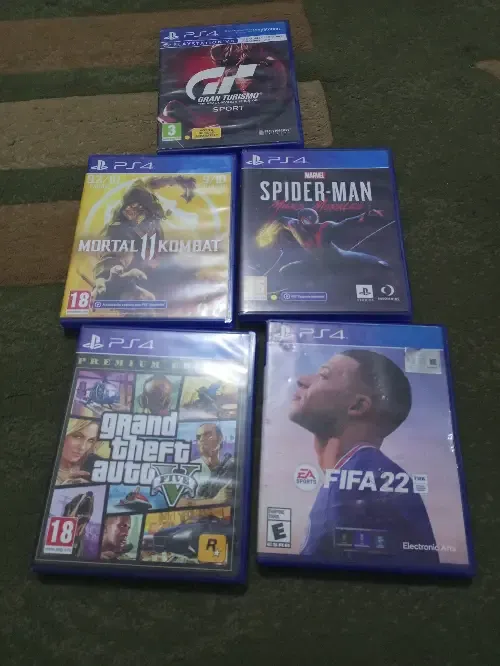 ps4 slim مشتريها جديدة استخدام منزلي بسيط شبه جديدة غير معدلة محدثة اخر تحديث معاها خمس سيديات ومحمل عليها fc25