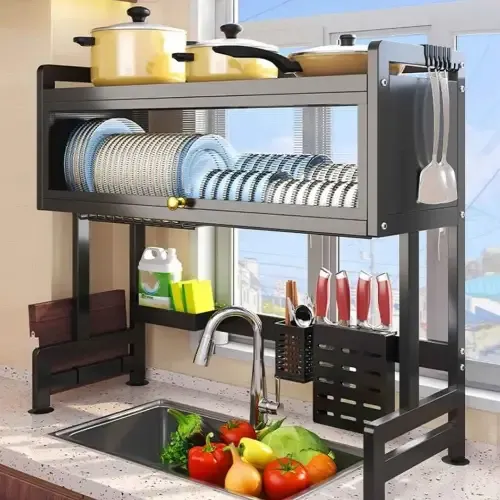 مشك صحون ملكي حجم كبير جامبو ❤️ مصنوع من المعدن ضد الصدأ والكسر 😎 رفين مع غطاء بليكسي لزيادة الجمالية 😍 وملحقات لتعليق معالق السكب والسكاكين 🤗 ورف صغير لوضع أدوات التنظيف وسائل الجلي ✅ أفضل وسيلة لغسل وترتيب أدوات المطبخ 🌸 🎗 الأبعاد موضحة بالتفصيل بالصور 🎗 ⭐️ الطول : 95 سم ⭐️ العرض : 28.5 سم ⭐️ الارتفاع : 79 سم توصيل ضمن الشام وشحن للمحافظات 🚌