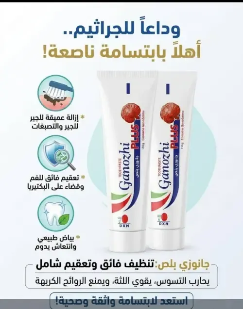 🦷 أكثر من مجرد معجون أسنان.. إنه "صيدلية" في منزلك! ✨ هل تبحث عن ابتسامة ناصعة ولثة قوية بدون مواد كيميائية ضارة؟ تعرف على معجون جانوزي (Ganozhi) الغني بفطر الجانوديرما! 🪥 🌟 لماذا يختاره الملايين حول العالم؟ ✅ ابتسامة مشرقة: ينظف الأسنان بعمق ويزيل الجير والتصبغات بلطف. ✅ لثة حديدية: يوقف نزيف اللثة ويعالج الالتهابات والتقرحات بفعالية. ✅ نفس منعش: يقضي على البكتيريا المسببة للروائح الكريهة طوال اليوم. ✅ آمن للعائلة: خالي من الفلورايد، السكر، والألوان الصناعية (آمن للأطفال). 💡 المفاجأة.. استخدامات "خارج الصندوق": معجون جانوزي ليس للأسنان فقط! بفضل قوة "الجانوديرما"، يستخدمه الكثيرون كإسعاف أولي لـ: 🔹 الحروق البسيطة والجروح. 🔹 الصداع (مسحة خفيفة على الصدغين). 🔹 لدغات الحشرات والحكة.