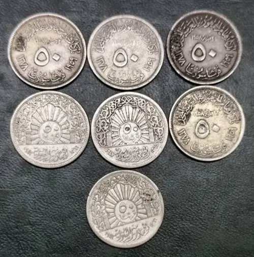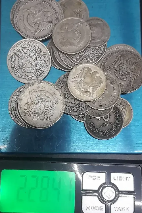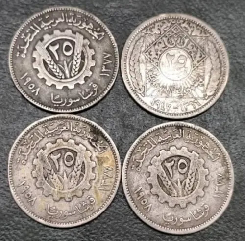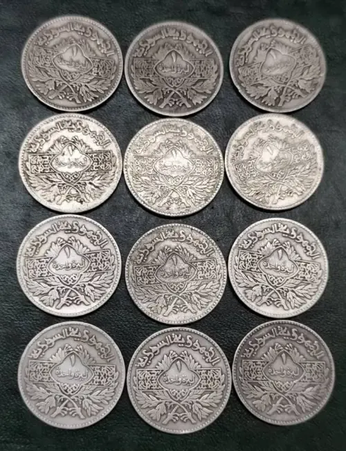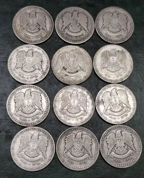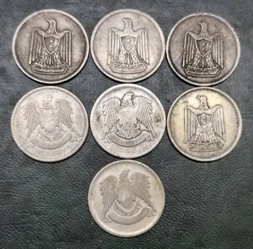 ليرة فضة ١٩٥٠ عدد ١٩ نص ليرة فضة عدد ٧ ربع ليرة فضة عدد ٤