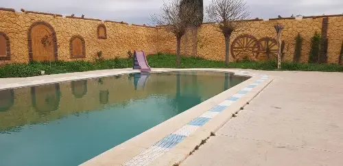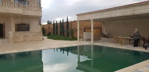 المساحة الكلية 2000 متر مربع مساحة البناء كل الأدوار 615 متر مربع مسبح 15م×5م جلسة خارجية مغطاة 20م × 5م مع مطبخ وباربكيو حجر جانب المسبح غرف تبديل وحمامات وغرفة فلاتر المسبح مدخل يتسع لعشرة سيارات وعدد 2 مواقف سيارات مع شمسية الدور الأرضي 300م صالون مطبخ رئيسي غرفة مع حمام الدور الأول 300م صالون 4 غرف نوم/ منهم غرفتين مع حمام 2 حمام الدور الثاني 15م غرفة وحمام ومطبخ الفيلا والسور كسوة خارجية حجر فاخر والفيلا جاهزة للسكن بالكامل ومزروعة مع تمديد تدفئة وطاقة كهربائية وطاقة شمسية ويوجد بئر مياه عمق 100 متر مع كافة تجهيزاته وأماكن للمزروعات. سكن للحارس مساحة 100متر مربع صالون غرفة نوم وحمام ومطبخ خارج بناء الفيلا وداخل السور. الفيلا غير مفروشة في دمشق منطقة دروشا شارع القصور