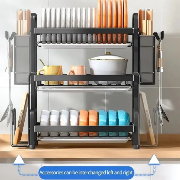 مشك صحون 3 طبقات مصنوع من المعدن ضد الصدأ والكسر صواني داخلية لتجميع المياه قابلة للإزالة ملحقات لترتيب معالق السكب والسكاكين 🎗 الأبعاد موضحة بالتفصيل بالصور ⭐️ الطول : 42 سم ⭐️ العرض : 23.5 سم ⭐️ الارتفاع : 62 سم