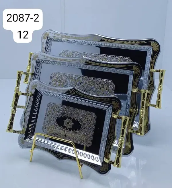 طقوم صواني 3 قطع ستانلس مستورد مذهّب 1⃣ الصغيرة { 18.7 × 26.5 } سم 2⃣ الوسط { 24 × 33.8 } سم 3⃣ الكبيرة { 29 × 41 } سم يتوفر موديلات تانية بقياسات اكبر