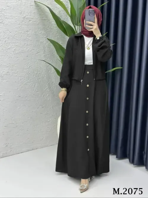 طقم تنورة 3قطع جاكيت سحاب وكنزة وتنورة مكلفة بزرار خشب قمااااش ماربل اجنبي مكفوووول لون اسود كحلي متبقي قياسات 2.بلبس44 3.بلبس 46.48 4.بلبس 50 لون بترولي قياسات 1.بلبس 40.42 2.بلبس44 3.بلبس 46.48 4.بلبس 50