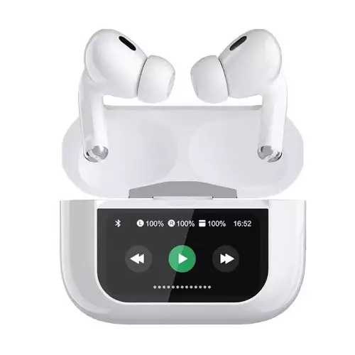 سماعات لاسلكية ذكية بشاشة عرض ملونة 📱 تعرض مستوى البطارية لكل سماعة بدقة 🔋 شاشة تتحكم بالصوت والتشغيل مباشرة ⏯️ مثالية للعمل، القيادة، أو التمارين الرياضية 🏃♂️ تصميم أنيق وخفيف الوزن يناسب الأذن 👂 مقاومة للعرق والماء (IPX5) 💧 زمن تشغيل يصل لـ 30 ساعة مع العلبة ⏳ شحن سريع وسهل عبر USB-C ⚡ متوافقة مع جميع الهواتف الذكية 📲 توصيل ضمن الشام وشحن للمحافظات 🚚