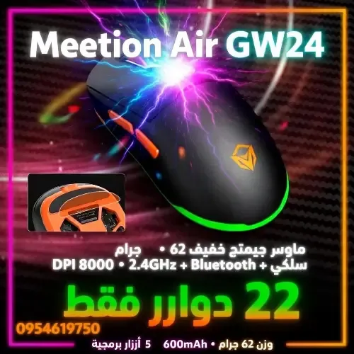 🖱️ ماوس Meetion Air GW24 – خفيف زي الريشة وسريع زي الصاروخ! ⚡ لو بتحب الألعاب أو حتى تستخدم الماوس ساعات طويلة، هذا الماوس راح يغير تجربة الاستخدام عندك. المميزات بطريقة سهلة: • وزن خفيف جداً: فقط 62 جرام! مريح لإيدك حتى لو لعبت أو اشتغلت ساعات طويلة. • اتصال ثلاثي الوضع: لاسلكي 2.4G (سريع) + بلوتوث + سلكي. يشتغل مع الكمبيوتر، اللاب توب، والموبايل بدون أي مشكلة. • دقة عالية: حتى 8000 DPI مع مستشعر PAW3104. • استجابة فائقة: 1000Hz (تأخير 1 مللي ثانية فقط). • إضاءة RGB جميلة: ألوان حلوة تضيف طابع جيمنج لمكتبك. • بطارية قوية: 600mAh، تدوم حتى 60 ساعة (بدون إضاءة) أو 30 ساعة (مع إضاءة). • 5 أزرار قابلة للبرمجة: تخصصها حسب احتياجك. له برنامج خاص به لتعديل احترافي للماوس🟥 الخلاصة:🟥🟥 ماوس اقتصادي، خفيف، مريح، وأداؤه عالي. مثالي للمبتدئين والمحترفين! جربتوا ماوس خفيف زي ده قبل كده؟ شاركوني رأيكم في الكومنتات 👇 سعر عنا مانخبيه (22)دولار سكرة للمتابعين صفحة تواجد ساحت محافظة رقم 0954619750 #Meetion #AirGW24 #GamingMouse #ماوس_جيمنج #ماوس_لاسلكي