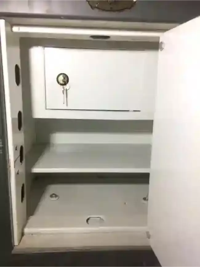 خزنة حديد ارتفاع ٦٠ سم وزن ٢٠٠ كيلو بقلبها درج حديد مع مفتاحه الخاص