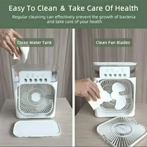المروحة الشاملة يلي مااا بتتكرر ✨مروحة مع رذاذ مع إضاءة بقطعة وحدة تعطي هواء قوي مع تحكم 3 سرعات 🌬️فيها خزان 600 مل لإضافة الماء والثلج 🧊مع زر خاص لإعطاء الرذاذ بـ 3 مستويات 💦مزودة بزر لإضافة إضاءة ليلة 7 ألوان 🌈و مؤقت لضبط العمل مدة { 1-2-3 } ساعات ⏱️موفرة للطاقة باستطاعة 10 واط ⚡تعمل بالوصل المباشر بأي مأخذ USB 🔌الأبعاد { الطول 22 - العرض 16 } سم 📏متوفرة بألوان مختلفة و متنوعة 👍توصيل ضمن الشام وشحن للمحافظات 🚚 السعر 165000