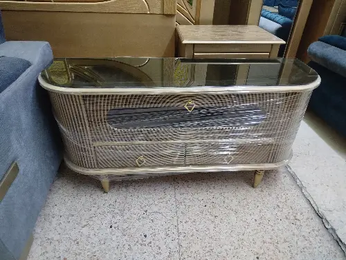 غرفة نوم جديدة بتضمن 8 قطع خزانة عرض 260 ارتفاع 245 غماقة 60 طبعاً الخزانة فيها دروج من تحت خزانة مفرد عرض 90 بابين فتح تخت عرض 160 طول 200 مع صندوق صاجلونة التخت بيرو مع كرسي كومادينة عدد 2 الخشبية كبس شوح و من الداخل بلاكيه للمزيد من التفاصيل التواصل على الواتساب على الرقم 0934425215