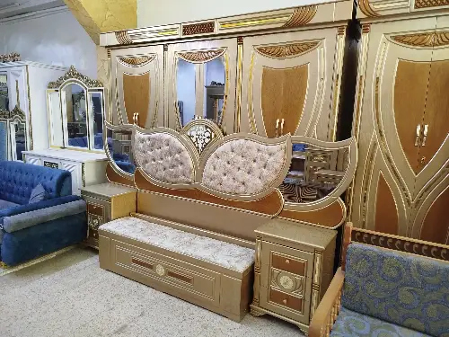 ✨غرفة نوم جديدة ملكية 🎉فيها سبع قطع 1️⃣خزانة عرض 270 غماقة 60 2️⃣تخت 160 ب 200 3️⃣بيرو مع كرسي تنجيد 4️⃣كومادينة عدد 2 5️⃣خماسية ✨الخشبية كبس شوح و ام دي اف متانة 💯 ✨القواعد كلها زان مشان ما يتأثر بالمي 😌 ✨التخت فيه صندوق 👌 ✨يمكن تغيير لون تنجيد التخت حسب الطلب 🎉 ✨للمزيد من التفاصيل التواصل على الواتساب على الرقم 0934425215