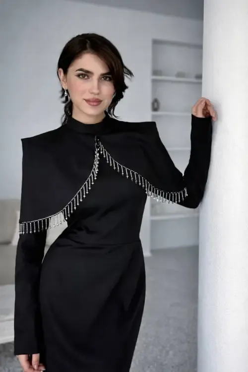 🔥 *الجديد المميز*🔥 الليدي لما تختار بعناية ما الها الا ستايلاتنا المميزة 😉😍 فستان سهرة قماش دبل سكوبا مكلف حجر الماس مع كمام شيفون مكلف لولو 👑 القياسات : 1 " 2 بلبس من 38 لل44 عدد الألوان : اسود 🖤 السعر : 340.000 *جملة&مفرق* *مبااااشر* حلب توصيل وشحن