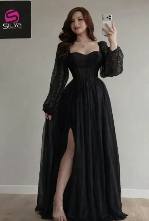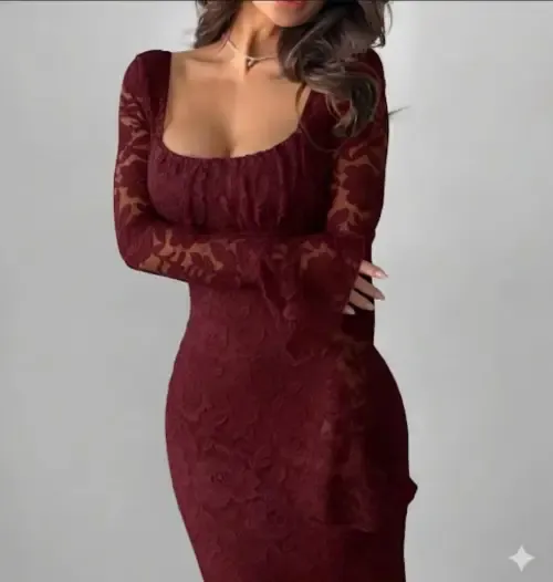 فستان مخمل + دانتيل فرنسي ٣٨/ ٤٠/ ٤٢/ ٤٤/ ٤٦/ ٤٨/ خمري/ اسود/ نيلي/ زيتي/ السعر 295 توصيل بحلب وشحن محافظات