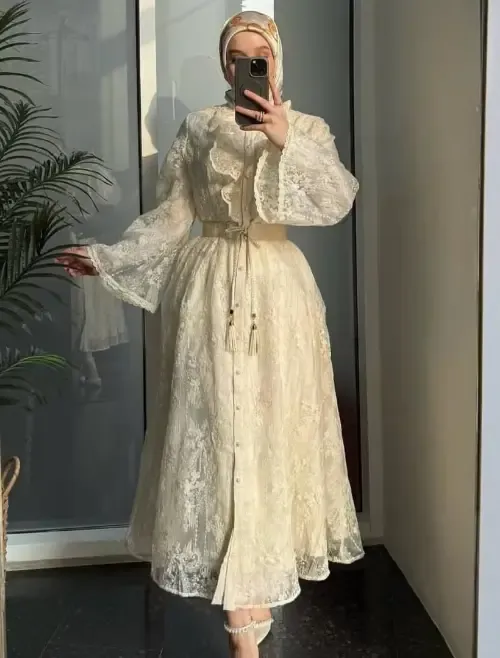 *ختمتا جماااااال 🤚🏻😍👑* *التريند من شركة CiLya* *فستاااااان دانتيل اجنبي مكفول مبطن بالكامل زراز من الأمام وكمر نفس الصورة طبق الأصل الطول للكاحل القدم* *مقاسات 1..2* *بلبس من 38 👈🏻46* *السعرررر 305.000* *حلب توصيل وشحن* ٢٠ هديل H١٥