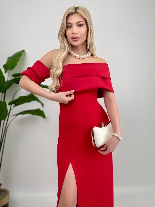 كود المنتج : 4027 فستان قماش كريب مزين بحبات لولو عند الأكتاف القماش كريب صناعة تركية 100% المقاسات S_M_L_Xl