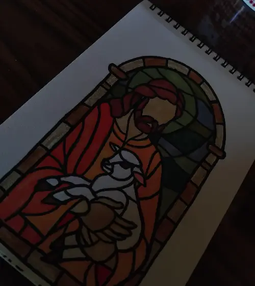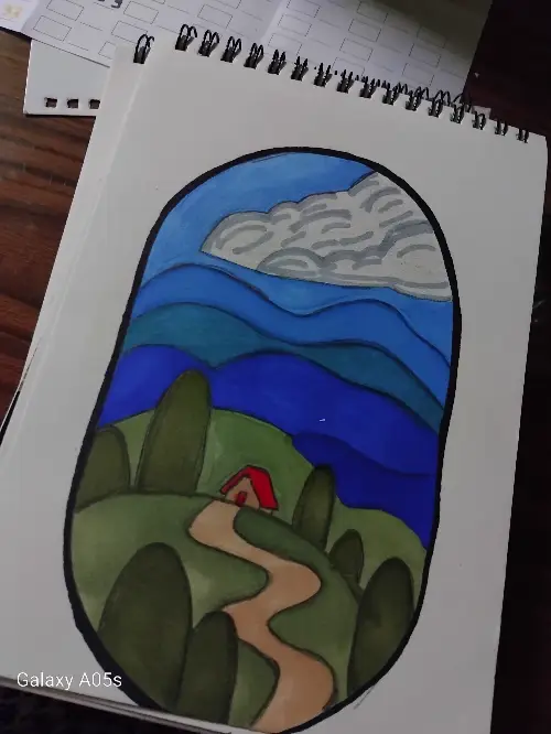 رسمة بدون برواز ، ورق a5 ، طول 25سم و عرض 18سم ،