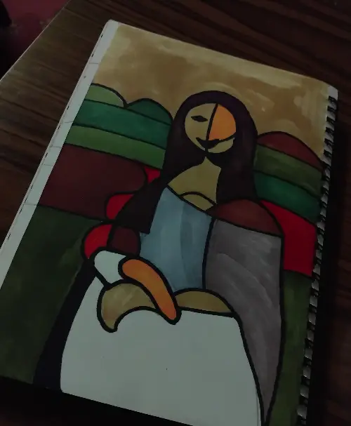 رسمة بدون برواز ، ورق a5 ، طول 20سم و عرض 15سم ، الوان خشب