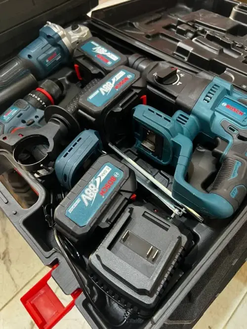طقم عدد لاسلكي احترافي 1×5 مع مثقب SDS يعمل على البطارية قوة عالية لكل أعمال الورش والصيانة المكونات . مثقب شحن SDS للأعمال الخرسانية دریل شحن تثقيب + فك وربط صاروخ شحن (جلاخة) . منشار جنزير صغير . مفك براغي كهربائي متعدد الاستخدام .3 بطاريات شحن + شاحن تشكيلة رؤوس حفر وقص وصنفرة . حقيبة قوية لحفظ وتنظيم العدة أداء قوي ومتين مناسب للحدادة والنجارة والأعمال المنزلية