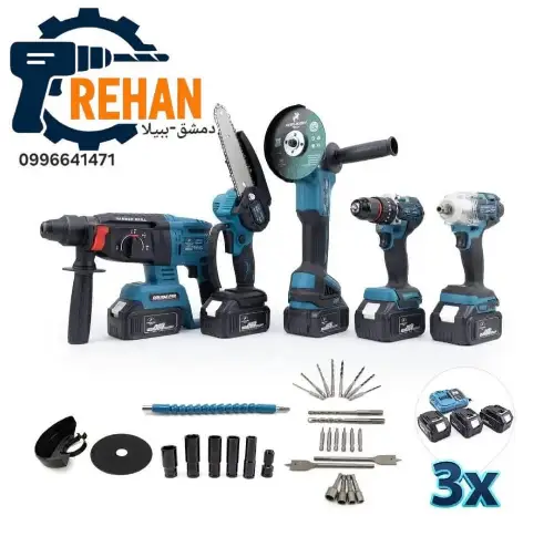 من شركة #Dawreek رجعنا وفرناه من جديد البكج الخماسي التركي بالسعر المحروق والمكفول من عند الريحان للإنارة والمعدات الصناعية: طقم عدد لاسلكي احترافي 1×5 مع مثقب SDS يعمل على البطارية قوة عالية لكل أعمال الورش والصيانة المكونات: . مثقب شحن SDS للأعمال الخرسانية دریل شحن تثقيب + فك وربط صاروخ شحن (جلاخة) . منشار جنزير صغير . مفك براغي كهربائي متعدد الاستخدام .3 بطاريات شحن + شاحن تشكيلة رؤوس حفر وقص وصنفرة . حقيبة قوية لحفظ وتنظيم العدة أداء قوي ومتين مناسب للحدادة والنجارة والأعمال المنزلية للطلب تواصل مسنجر او واتساب 0996641471 العنوان: ريف دمشق-ببيلا بعد دوار ببيلا باتجاه يلدا 50 متر من الطرف الثاني ريحان للإنارة قناتنا على واتس أب https://whatsapp.com/channel/0029VbB0PzsGufJ3JEeM8J12
